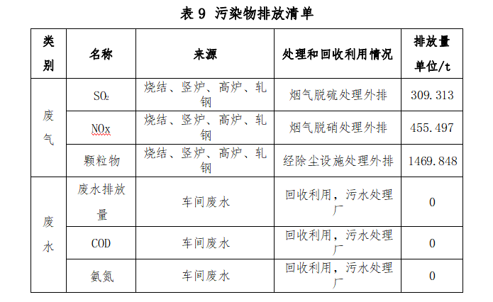 ? 生產(chǎn)過(guò)程中排放的主要污染物為廢氣及廢水兩類(lèi),廢氣中主要?污染物包括二氧化硫、氮氧化物、顆粒物。廢水中主要污染物包括COD?和氨氮。主要污染物排放統計見(jiàn)表?9。
