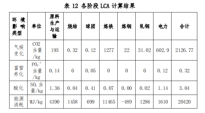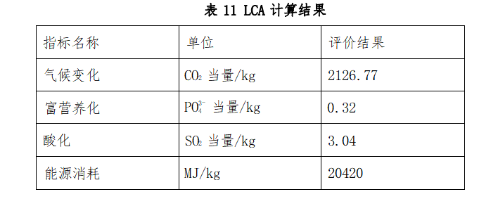 ? 本報告按照《綠色設計產(chǎn)品評價(jià)技術(shù)規范 壓力容器用鋼板YB/T 4876—2020》評價(jià)標準的要求,在?eBalance?上建模計算得壓力容器用鋼板的全生命周期模型計算結果,計算指標分為氣候變化、富營(yíng)養化、酸化、能源消耗,結果見(jiàn)表?11。