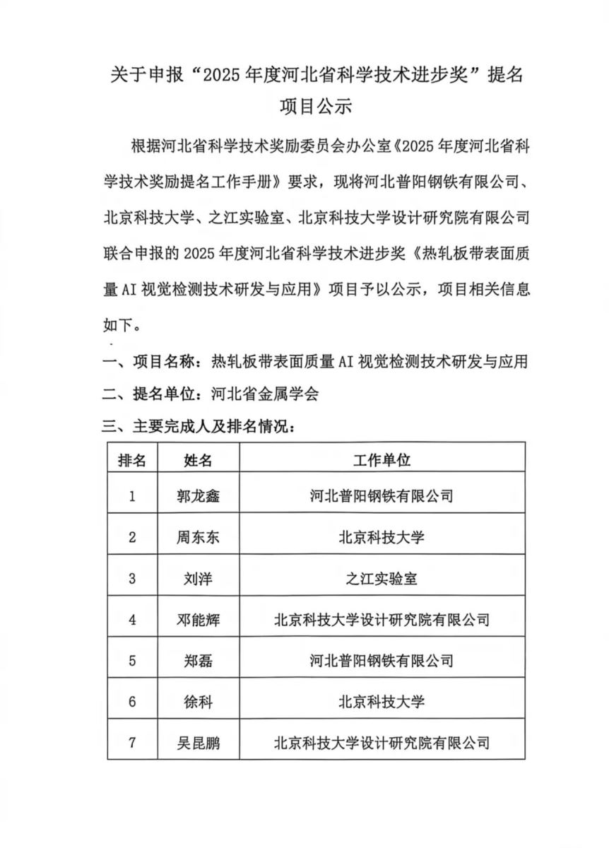 關(guān)于申報“2025年度河北省科學(xué)技術(shù)進(jìn)步獎”提名 項目公示