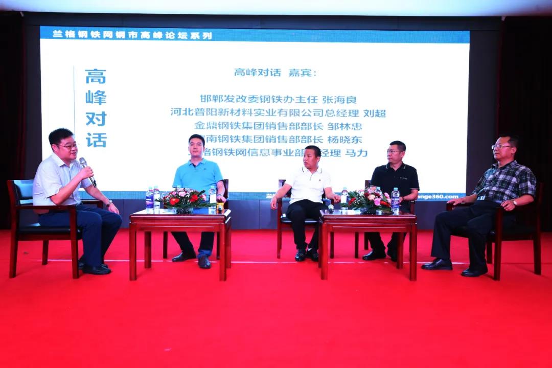 在蘭格鋼鐵信息事業(yè)部總經(jīng)理馬力主持的高峰對話(huà)環(huán)節,邯鄲發(fā)改委鋼鐵辦主任張海良、河北普陽(yáng)新材料實(shí)業(yè)有限公司總經(jīng)理劉超、金鼎鋼鐵集團銷(xiāo)售部部長(cháng)鄒林忠、冀南鋼鐵集團銷(xiāo)售部部長(cháng)楊曉東等行業(yè)人士,就產(chǎn)業(yè)重組整合背景下,邯鄲鋼鐵產(chǎn)業(yè)發(fā)展方向、鋼市產(chǎn)融結合和期現操作新思路以及采暖季政策調控以及鋼市走向進(jìn)行了交流探討,精彩的對話(huà)博得臺下陣陣掌聲。