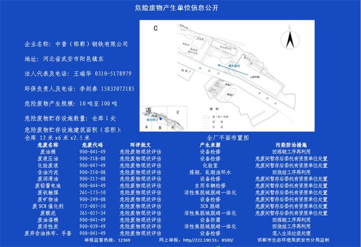 中普(邯鄲)鋼鐵有限公司危險廢物產(chǎn)生單位信息公開(kāi)