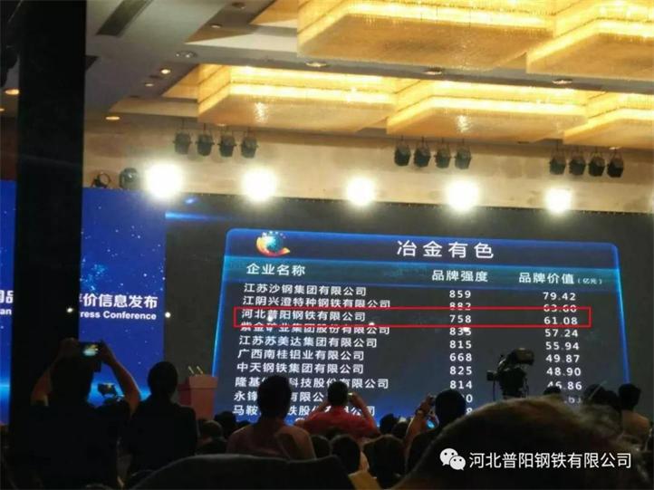 從5月9日召開(kāi)的2018中國品牌價(jià)值評價(jià)信息發(fā)布暨第二屆中國品牌發(fā)展論壇會(huì )上獲悉,我市普陽(yáng)鋼鐵榮列冶金有色行業(yè)品牌價(jià)值全國第五名,品牌強度758,品牌價(jià)值61.08億元。