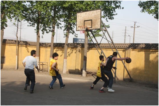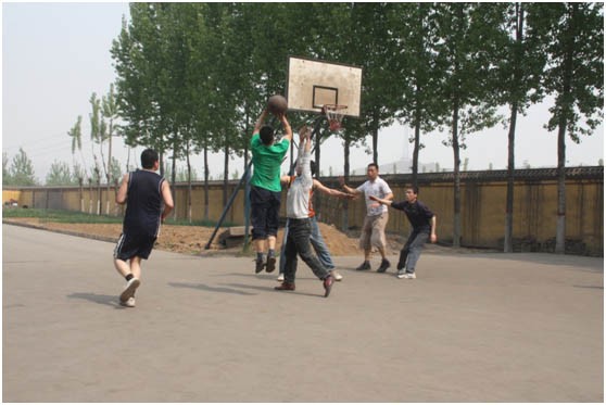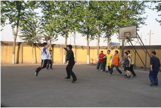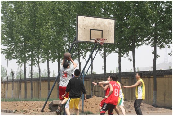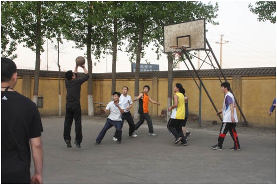 電廠(chǎng)隊大中鋒龍帥在籃下突破。