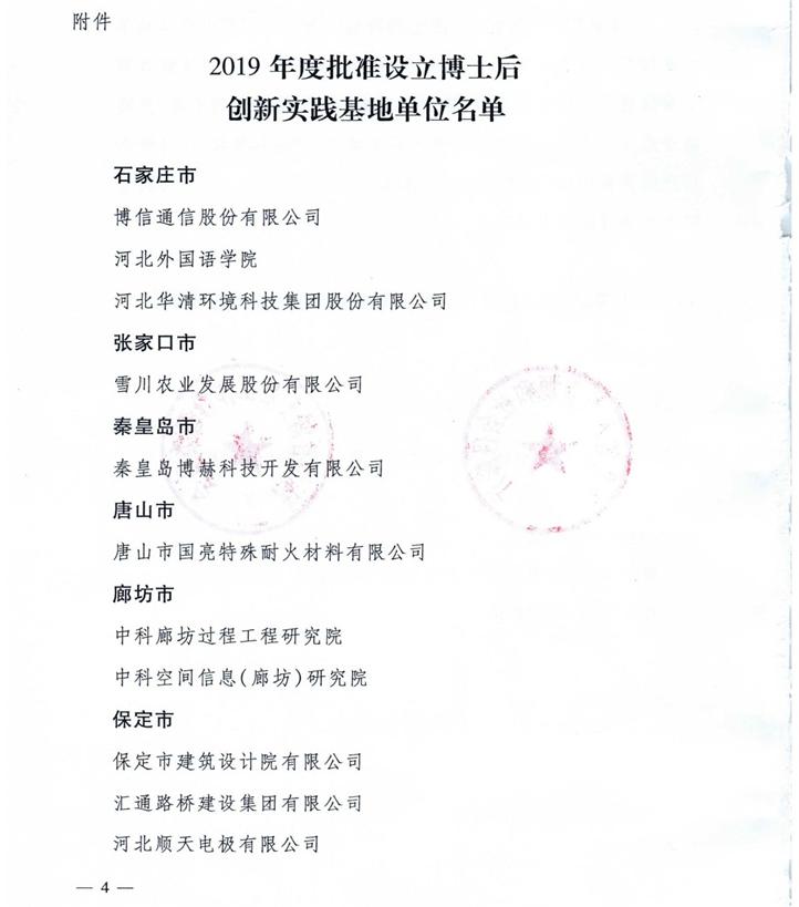 近日,根據《河北省人力資源和社會(huì )保障廳、河北省博士后工作管理委員會(huì )【2019】311號》文件公示,全省共有23家單位獲批設立博士后創(chuàng )新實(shí)踐基地,其中河北普陽(yáng)鋼鐵有限公司榜上有名,是邯鄲市今年唯一入選的鋼鐵企業(yè)。