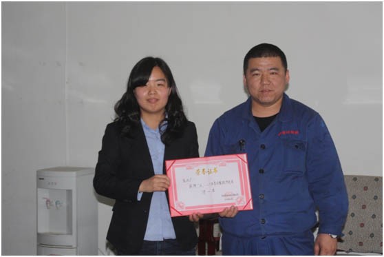 2013年“迎五一”體育比賽圓滿(mǎn)落下帷幕。此次比賽得到了各單位的大力支持,各參賽選手以自己精彩的表現,體現了普陽(yáng)人“團結、拼搏、向上”的精神風(fēng)貌,得到了公司領(lǐng)導及廣大工友的一致贊譽(yù)。5月7日下午,辦公室主任石現英代表公司為優(yōu)勝的單位和個(gè)人頒發(fā)了獎金和證書(shū)。圖為石現英與焦化廠(chǎng)領(lǐng)獎代表的合影。