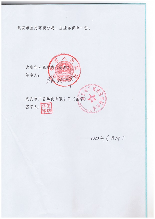 廣普焦化-武安市人民政府土壤環(huán)境重點(diǎn)監管企業(yè)污染防治責任書(shū)