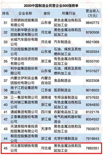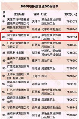 河北普陽(yáng)鋼鐵有限公司以786億元營(yíng)業(yè)收入榮列2020中國民營(yíng)企業(yè)500強第86位,較去年提升30個(gè)位次;中國制造業(yè)民營(yíng)企業(yè)500強第45位,較去年提升15個(gè)位次;整體排名居邯鄲民營(yíng)鋼鐵企業(yè)之首,成功入圍中國民營(yíng)鋼鐵企業(yè)前十強!