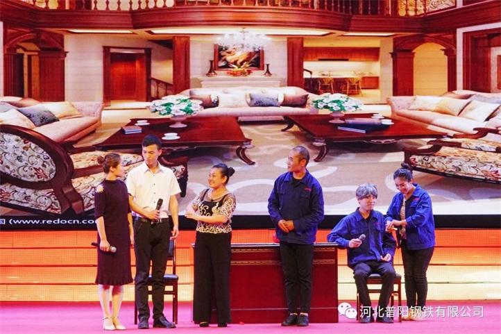 由普陽(yáng)人自編自演的歌伴舞、啞劇、小品、朗誦等節目,通過(guò)演員們激情的表演,表現的淋漓盡致,展現出了社會(huì )主義新時(shí)代的幸福場(chǎng)景,也表達了普陽(yáng)人對祖國的熱愛(ài)。由全體演職人員共同高歌的《普陽(yáng)之歌》,把晚會(huì )推向了高潮,隨后,陽(yáng)邑鎮領(lǐng)導和公司領(lǐng)導上臺與演職人員合影,董事長(cháng)郭恩元與演員們親切握手。