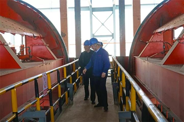 隨后石總陪同韓主席一行參觀(guān)了翻車(chē)機現場(chǎng),親眼見(jiàn)證了第一節車(chē)廂的礦粉入倉。